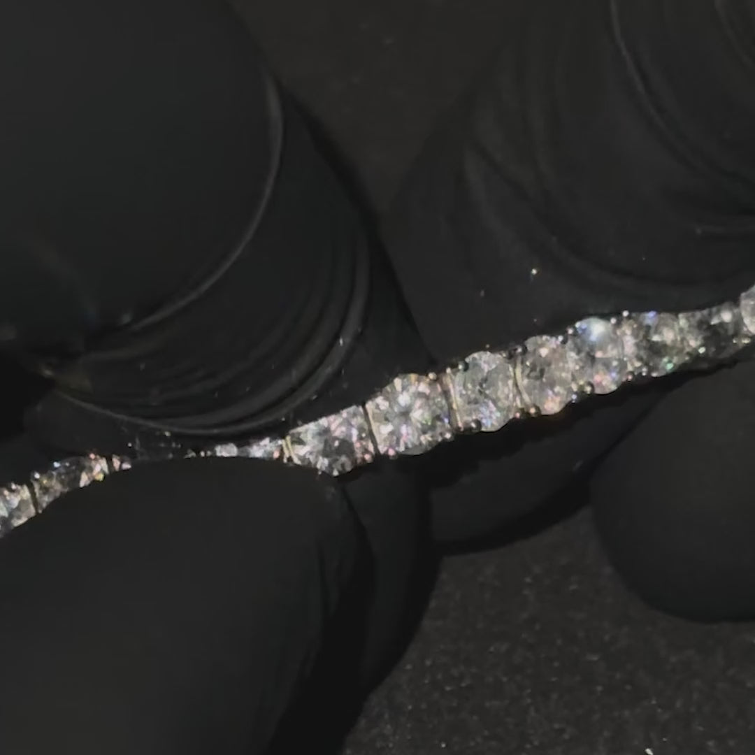 Moissanite to kamień o wyjątkowej grze światła i twardości dorównującej diamentowi - błyszczy intensywnie zarówno w dziennym świetle, jak i przy wieczornym oświetleniu. Linia kamieni ułożona jest precyzyjnie jeden przy drugim, tworząc efekt ciągłego, hipnotyzującego blasku na nadgarstku.